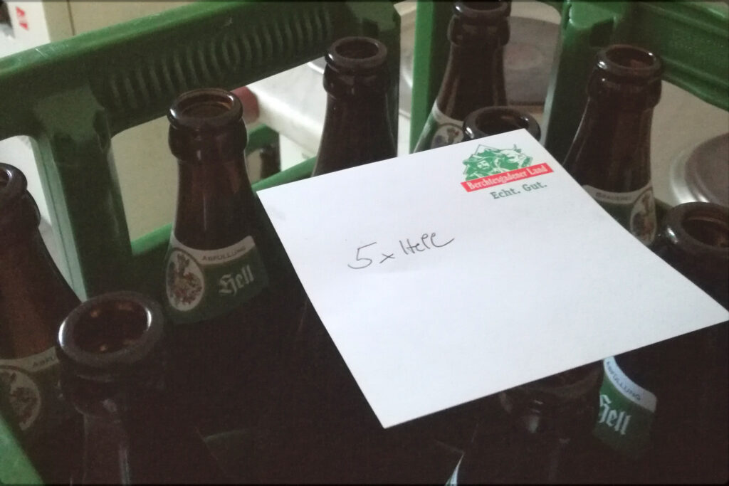 Was Armin an seiner Arbeit am meisten gefällt, sind die Ausflüge in die Heimat und der persönliche Kontakt zu den Kunden. „Das sind zwei Aspekte, die mir in meinem früheren Bürojob gefehlt haben. Ich bin kein Bürohocker, der gerne 9 Stunden auf den Bildschirm starrt. Ich bin viel lieber unter Menschen“, verriet uns Armin auf der gemeinsamen Heimfahrt nach Bad Reichenhall. Auf dem Tourplan standen an diesem Tag vor allem Privatpersonen, aber auch kleine Firmen, Cafés, Gasthäuser und bäuerliche Wirtschaften. Zu den bäuerlichen Wirtschaften gehört auch die Familie Aicher aus Ufering, die seit der Gründung der Brauerei Schönram zu den Stammkunden und damit zu den treuesten Kunden zählt. Hier liefert Armin besonders gerne aus, weil er von der Wirtin Rosi jedes Mal eine Brotzeit bekommt.
