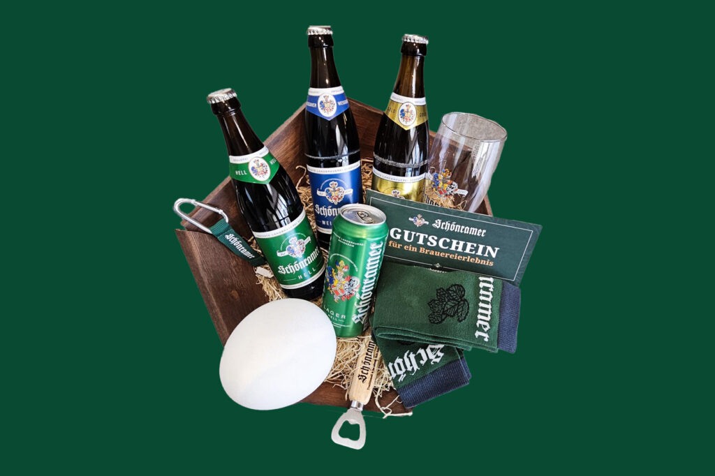 Stelle mit unseren Bieren, Getränken, Fanartikeln und weiteren Geschenkideen individuelle Schönramer Geschenkboxen zusammen und überrasche deine Liebsten zum Osterfest!